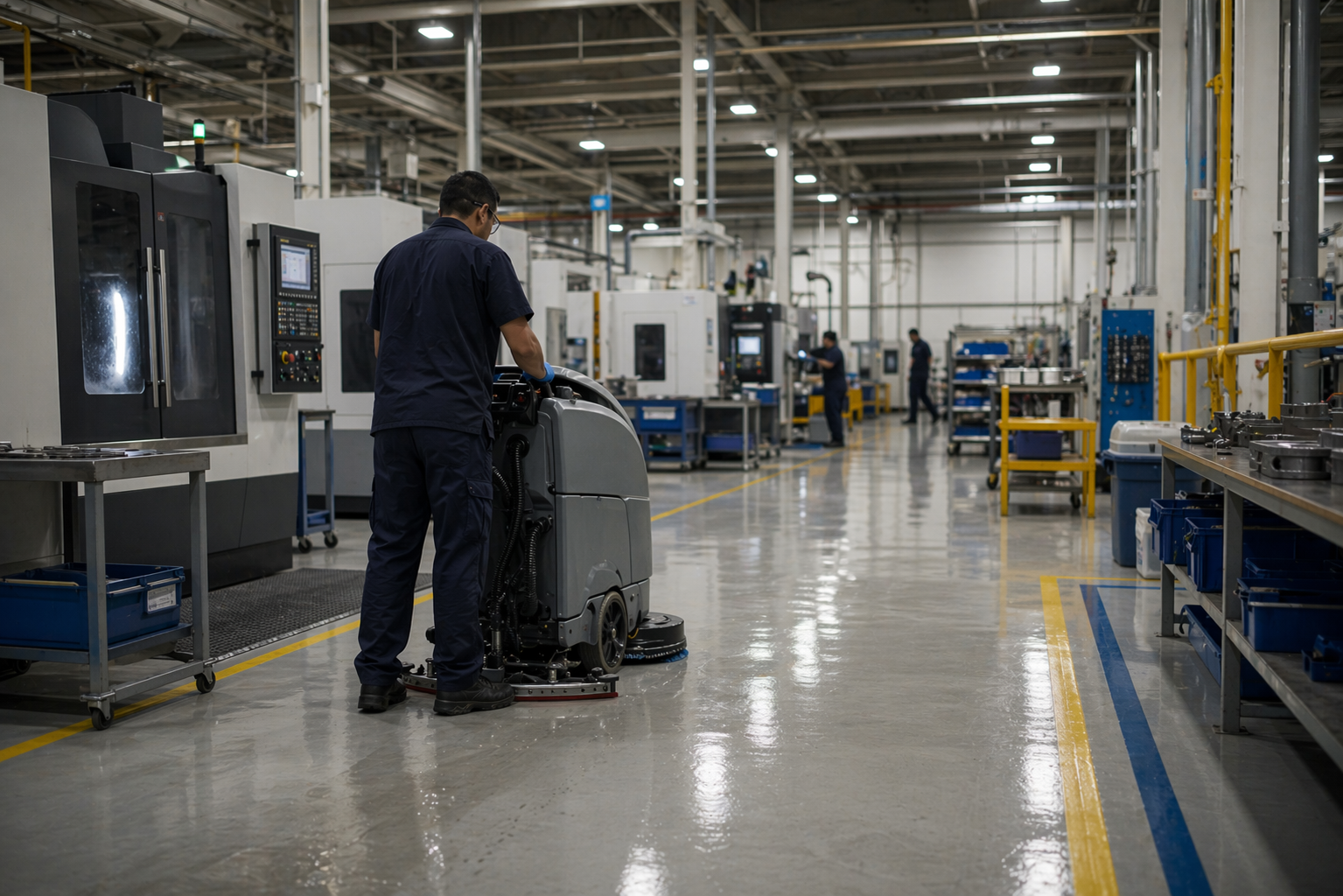 Yes. For manufacturing floors with oil, coolant, or chemical residue, we use industrial-grade degreasers and scrubbing equipment rated for concrete and epoxy coatings. Regular degreasing prevents slip hazards with OSHA and keeps your production area clean for quality inspections.